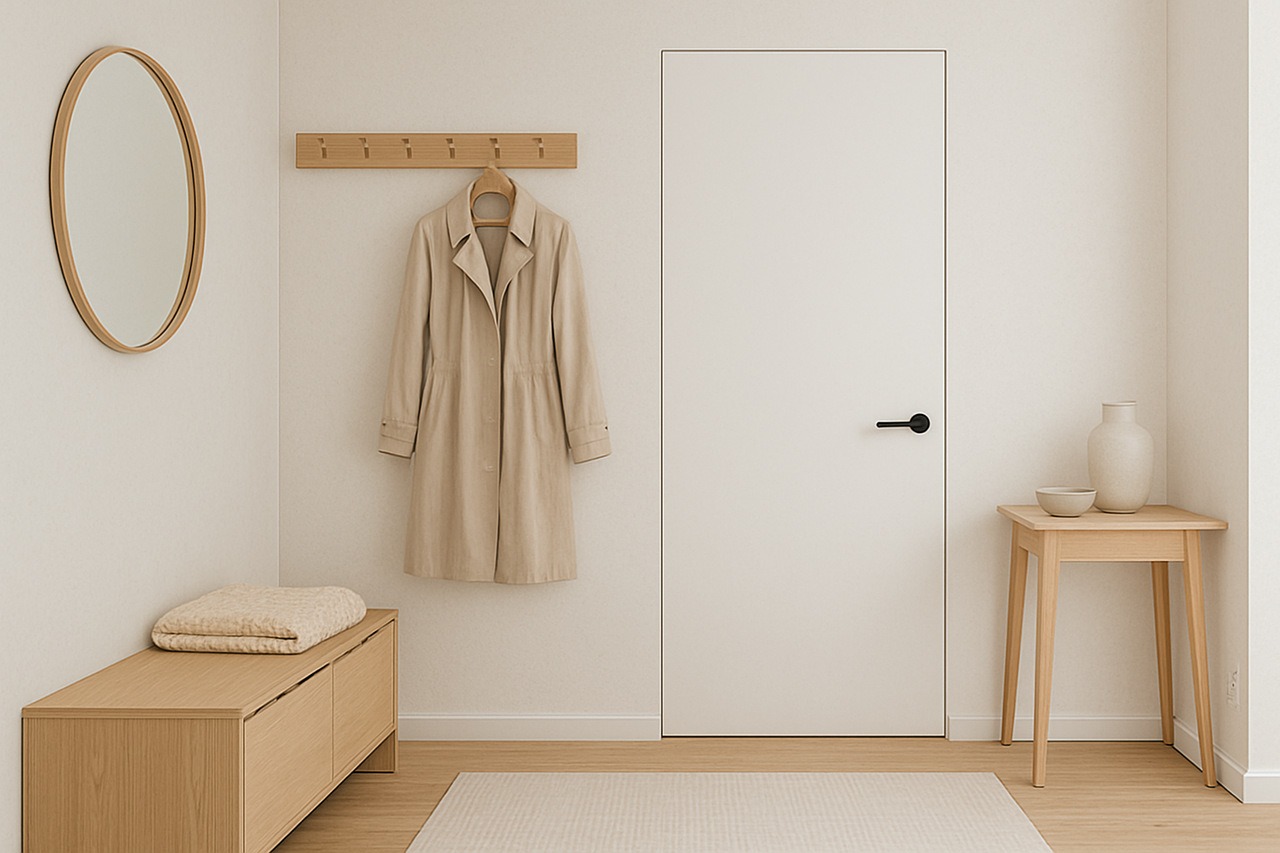 Drzwi pomalowane na ten sam kolor co ściana lub oklejone tapetą niemal znikają w przestrzeni. Jednak każda zmiana kolorystyki wnętrza oznacza często konieczność przemalowania lub wymiany drzwi, co bywa czasochłonne i technicznie wymagające.